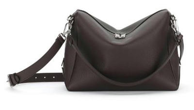 2本の細身ベルトを束ねるロゴ入りメタルツイストロック。キャリーオールトートには3枚のフラップが配され、ロックを緩めると外ポケットが表情を現す。閉じる/開くという行為が、佇まいを切り替えるスイッチになる点が実に巧みだ。スナップ配置によりコンパートメントは可変式。通勤から週末まで、用途に合わせてバッグの顔つきを変えられる。こうした設計は高品質で、使い勝手の評価も優良といえる。